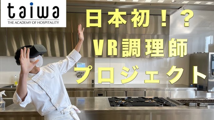 京都調理師専門学校でいま注目を集めているのが、「VR(仮想現実)」を使った最先端の調理師教育です。VRゴーグルを装着すると、まるで実際の厨房やレストランにいるかのような臨場感。360度の映像の中で、プロの動きや調理工程をリアルに体感することができます。